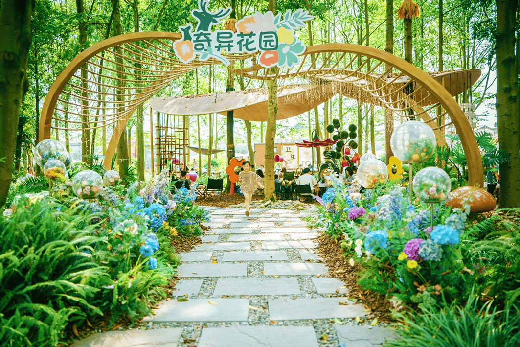 比如,成都·鹿尔花园,以“花与鹿”为主题的户外美学空间,占地110亩,年营收近2500万,单日营收突破70万,客单价、复购率、好评度稳居同品类前列,2年时间成功复制到佛山、邯郸、内江等多个城市,被誉为亲子乐园天花板。