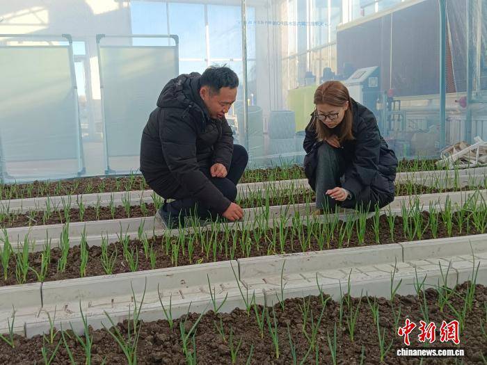 五三村是突泉县有名的紫皮蒜种植示范村,为进一步推动产业升级,中国气象局在突泉县建成作物模型温室试验基地。范嘉奇蹲在地里,和专家一起记录大蒜长势,琢磨着如何提升品质。